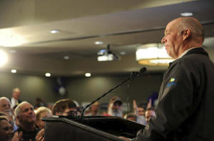 Quist, wearing his signature cowboy hat, told supporters in Missoula,