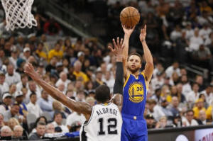 Warriors point guard Stephen Curry (30) shoots the ball over San