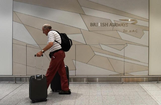 A man arrives at the British Airways check-in desk at