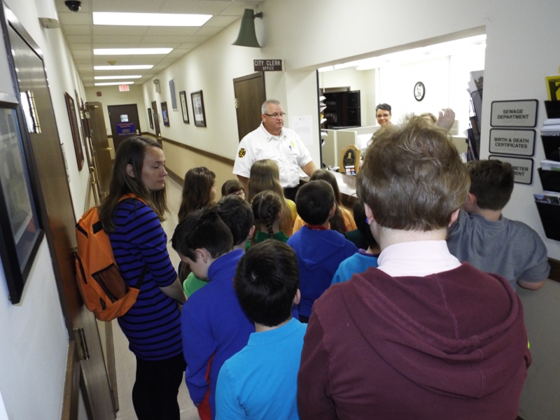 After a few more minutes visiting, Miller began the tour with the Building and Safety Office. He explained the duties of the Code Officer for the city of Lincoln then moved on to the City Clerk’s Office where newly elected City Clerk Peggy Bateman and her staff greeted the children and welcomed them to city hall.