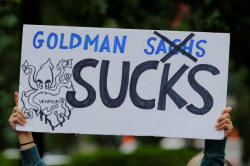 Sachs" picketed outside of Goldman's headquarters in lower Manhattan on