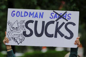 Sachs" picketed outside of Goldman's headquarters in lower Manhattan on