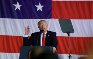 President Donald Trump delivers remarks to U.S. troops at the Naval Air