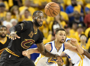 Cavaliers forward LeBron James (23) and Golden State Warriors guard