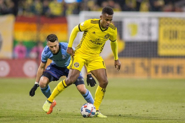 Columbus Crew SC forward Ola Kamara (11) dribbles the ball while New