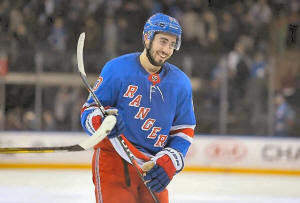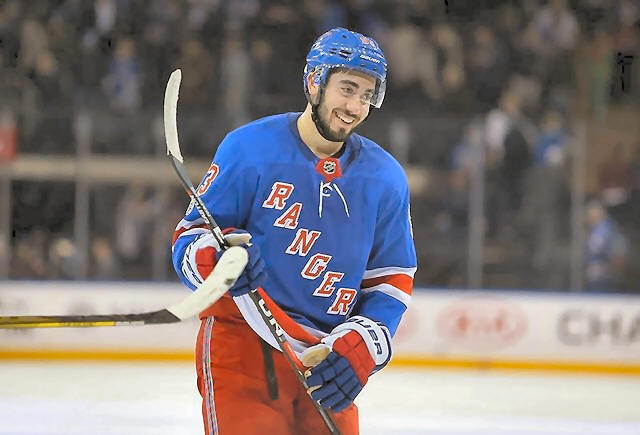 Rangers center Mika Zibanejad (93) smiles after being named the