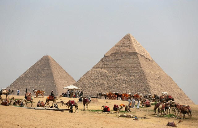 Pyramids awaiting tourists in Giza, Egypt on March 29, 2017.