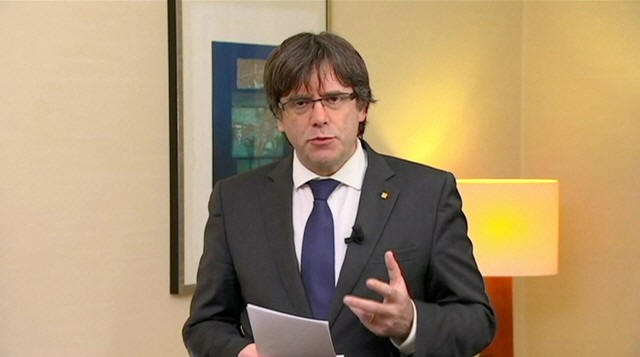 Sacked Catalan President Carles Puigdemont makes a statement in this