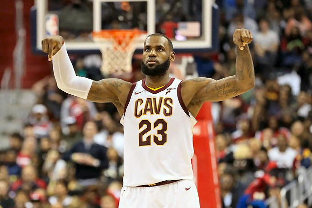 James sank 23 of 34 shots including two 3-pointers, made all nine of