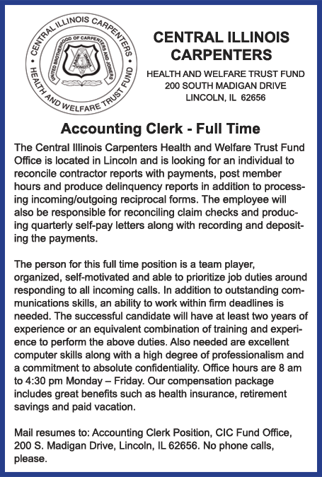 Lincoln Daily News will not knowingly accept advertising for employment which is in violation of these laws.  Our readers are informed that employment offerings advertised are available on an equal opportunity basis.