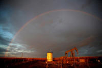 A rainbow is seen over a