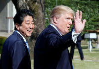 and Japan's Prime Minister Shinzo Abe walk before their working