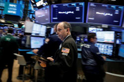 Traders work on the floor of the New York Stock Exchange (NYSE) in