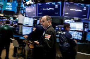 Traders work on the floor of the New York Stock Exchange (NYSE) in