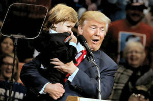dressed as Trump at a campaign rally in Wilkes-Barre, Pennsylvania,