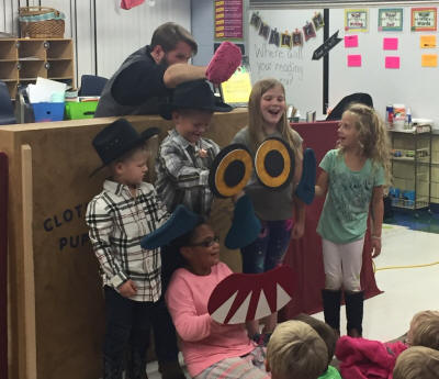 Children enjoyed "Make a Book," and a puppet show by Clothespin