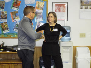 Staff Member Amy Hyde visits with a guest.
