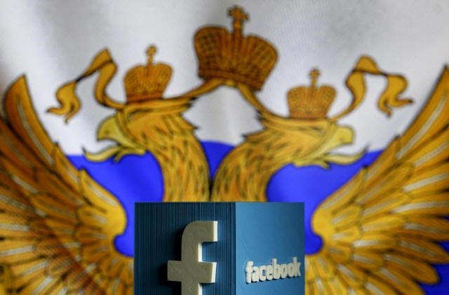 A 3D model of the Facebook logo is seen in front of a Russian flag in this photo illustration taken in Zenica, Bosnia and Herzegovina, May 22, 2015. REUTERS/Dado Ruvic |