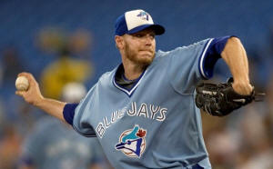 Toronto Blue Jays starting pitcher Roy Halladay throws against the