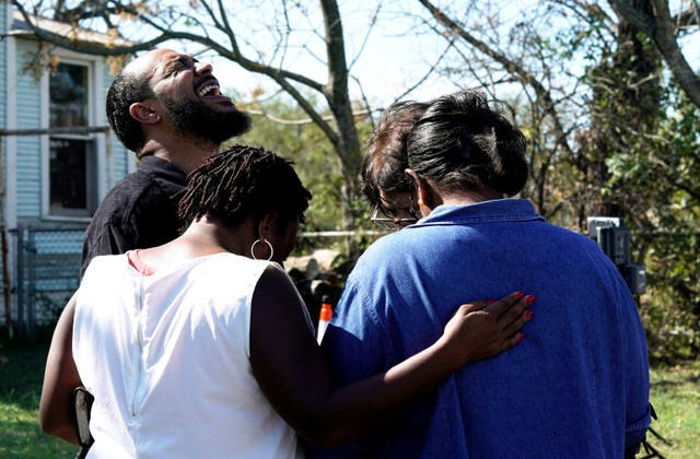 Pastor Oscar Dean prays with others near the site of the shooting.
