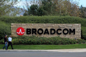 A sign to the campus offices of chip maker Broadcom Ltd, who
