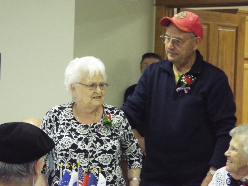 Harold Krusemark noted he served in World War II in Europe, and after his tour, he maintained as a reserve, and was called back to war in Korea. Harold is 96 years old, and possibly the oldest veteran in the room.