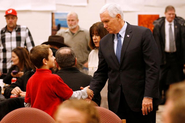 U.S. Vice President Mike Pence greets a young boy at Floresville