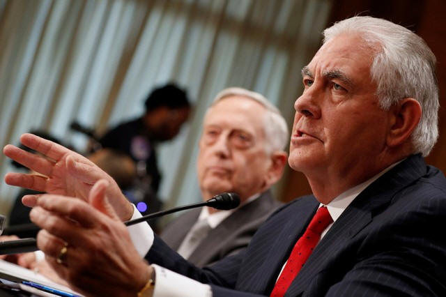 U.S. Secretary of State Rex Tillerson (R) and Defense