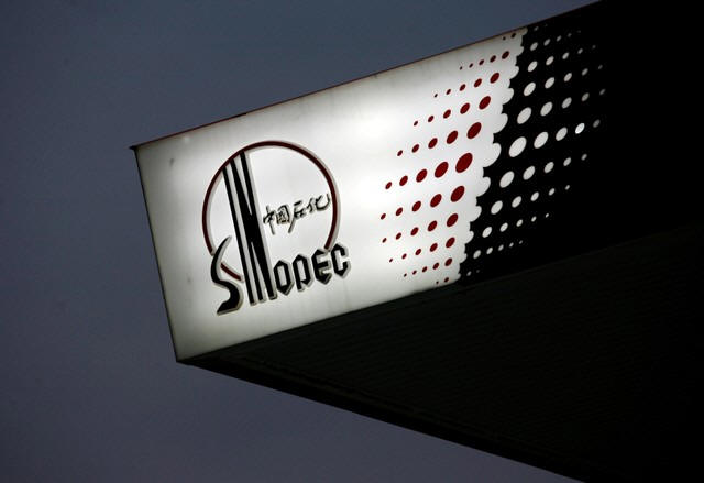 The Sinopec logo is seen at one of its gas stations in Hong Kong