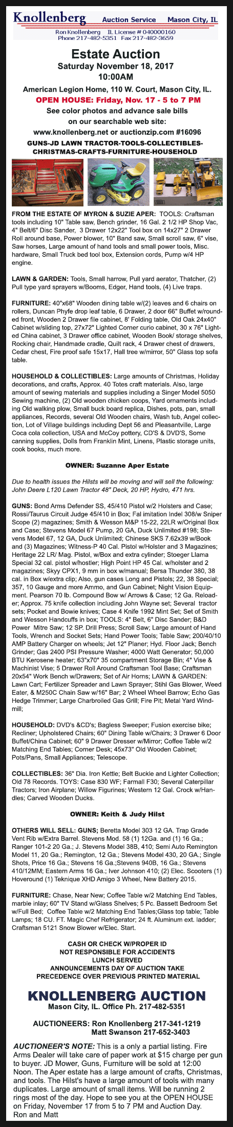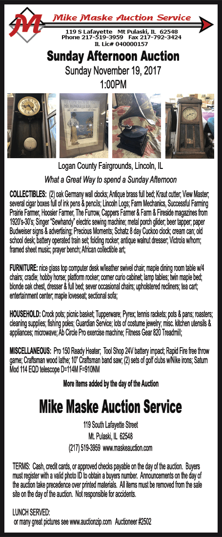 Click on Maske Auction Service ad for sale bills and listings of auctions and goods.