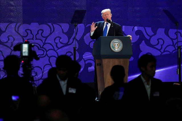 U.S. President Donald Trump delivers remarks at the APEC