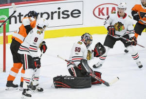 the Flyers to a 3-1 win over the struggling Chicago Blackhawks.