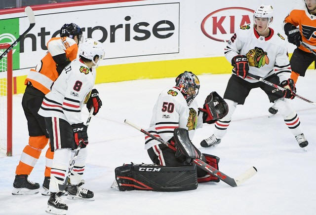Philadelphia (8-6-2). Corey Crawford (7-6-0) made 28 stops in the