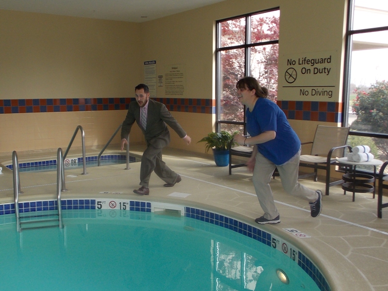Manager Kayla Eimer took a dive into the pool at the Hampton Inn,