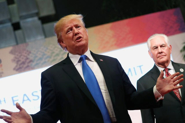 Secretary of State Rex Tillerson looks on as President Donald Trump