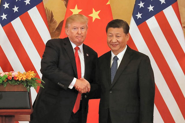 President Trump and China's President Xi Jinping shake hands after