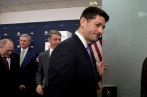 U.S. House Speaker Paul Ryan (R-WI) leaves after a news conference