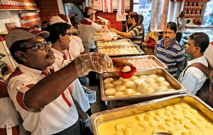 Luscious rosogolla, or sweet cheese balls dripping with sugar