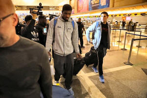 The players landed at Los Angeles International Airport on a flight
