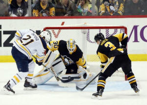 for a 3-1 Sabres lead. Behind the Pittsburgh net, there was a