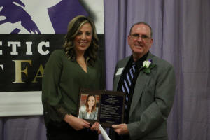 Pickering stepped up and took credit for hiring Hemenway in 1991 and then called Hemenway back to the podium to introduce Lincoln College’s second inductee of the evening, Brianne Nation.