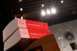 Copies of tax legislation are seen during a markup on the "Tax Cuts