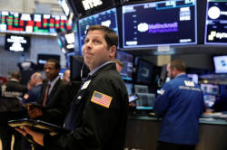 Traders work on the floor of the New York Stock Exchange shortly