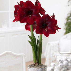 When buying amaryllis, purchase large bulbs for the biggest and longest lasting floral display. One jumbo bulb will send up multiple flower stems over several weeks. Smaller bulbs can be planted two or three to a pot to create a living bouquet.