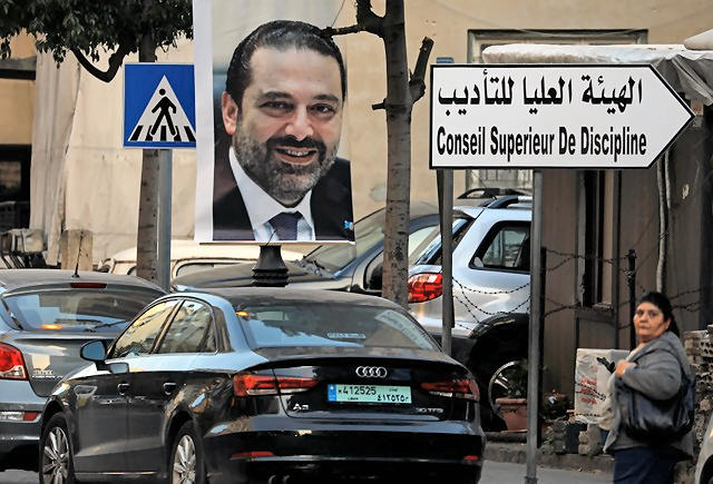 A poster depicting Saad al-Hariri, who announced his resignation as