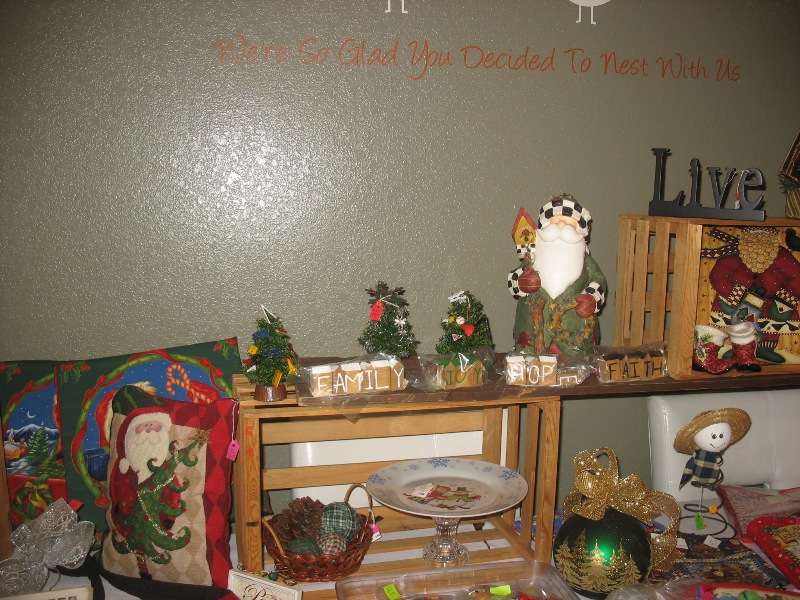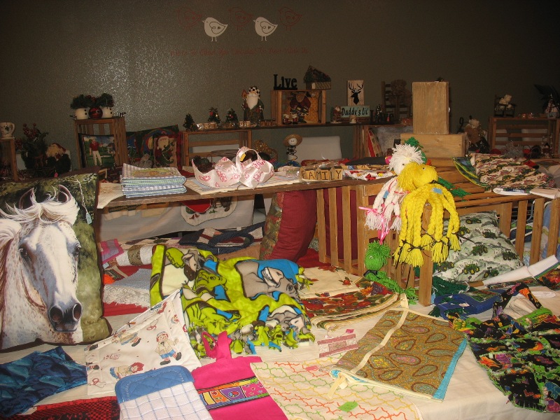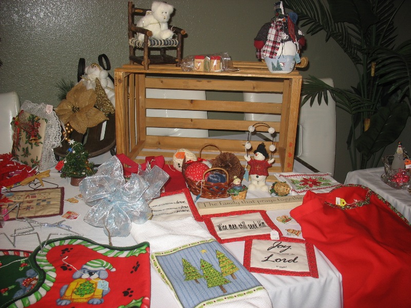 Handmade Christmas outfits, quilts, and blankets were also available