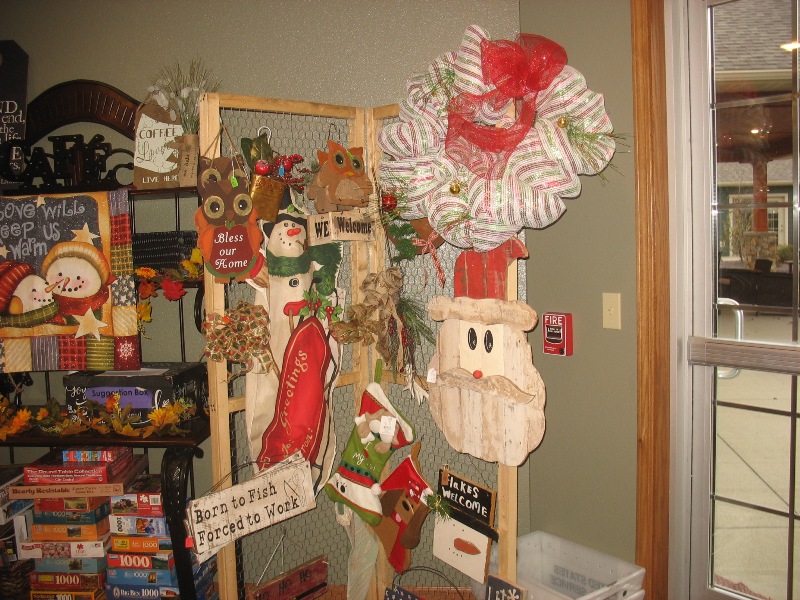 items that included ornaments, stockings, pillows, and wreaths.
