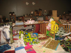 display of handmade jewelry lined another area.