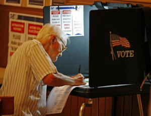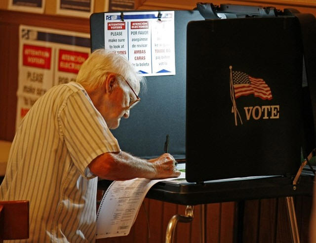 An unidentified voter casts his ballot at a local polling station in
