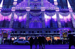 Saks Fifth Avenue's holiday light show can be seen on display in the